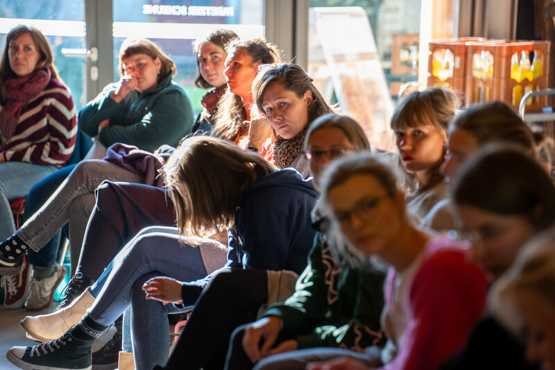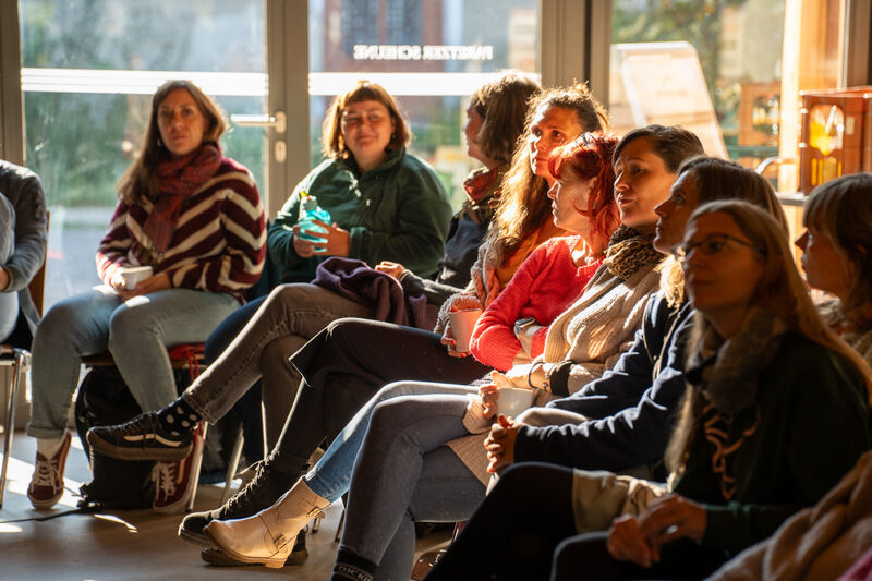 Auch die internen Workshops boten viel Raum zum Ausprobieren: von Kinderyoga über kreative Bewegungsarbeit und den Einsatz der Pedalo-Kisten bis hin zu einer Einführung ins Asyl- und Aufenthaltsrecht. Für neue Kolleg:innen stand außerdem das Programm Eigenständig werden im Mittelpunkt.